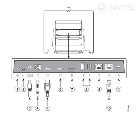 | Cisco VESA mounting kit | The optional mounting kit includes an adapter that replaces the DX80 foot stand and provides mounting points for 75- x 75- mm and 100- x 100-mm VESA, allowing the use of third-party mounting solutions or the basic flush wall-mount included with the kit. |